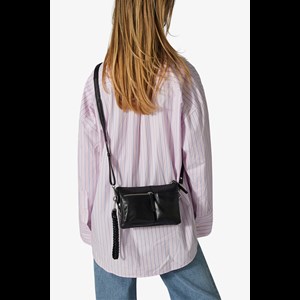 Oxana kombikoppling i Amalfi-läder från Adax. Oxana kombikopplingen kommer med både en avtagbar lång justerbar rem och en kort flätad handledsrem. På framsidan av väskan finns en öppen läderficka och ett litet blixtlåsfack. Clutchen stängs med dragkedja upptill på väskan. Väskan har fyra öppna fack, blixtlåsfack och en innerficka med dragkedja och en öppen läderficka samt 4 kortfickor. Ett litet nät medföljer samt en liten garantibroschyr som kan användas som korthållare. Amalfi-läder är väldigt mjukt och smidigt.