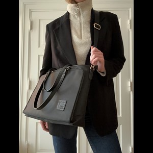 Copenhagen från danska märket Again är gjord av återvunnen kvalitetsnylon och är en fantastisk väska för jobbet. Väskan har ett stort fack med blixtlåsficka och meshficka. Framfickan rymmer bekvämt en 13" dator i det fodrade facket, som delas av en mittficka med dragkedja som har två öppna fickor och två meshfickor. Blixtlåsficka på baksidan. Avtagbar axelrem.