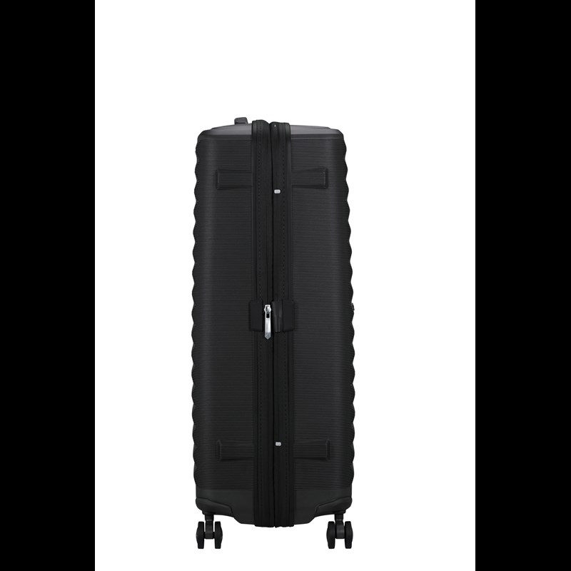 Fastforward resväska i slitstark polypropylen, möjlighet till utvidgning 108–118 L, TSA-lås, dubbla hjul, invändigt tyg tillverkat av återvunnen PET-plast, avdelare med blixtlås på båda sidor, möjlighet att sätta initialer med de medföljande klistermärkena, 3 års begränsad garanti.