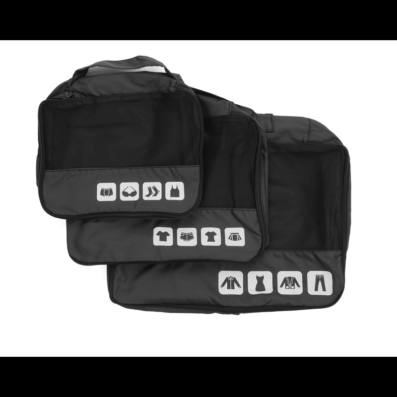 Paketpåsar. Praktiska packpåsar i 3 storlekar: S: 25,5X19X8,5cm, M: 32,5X24,5X8,5cm, L: 39,5X29X8,5cm. Idealisk för förvaring av kläder för enkel och tydlig organisation av resväskans innehåll.