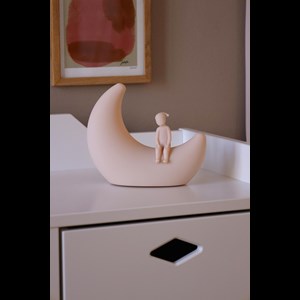 Skapa en mjuk belysning i rummet med vår fantasifulla månlampa. Nattlampan skapar en drömlik atmosfär med sitt varma och mjuka ljus, och kommer garanterat att inspirera till äventyrliga och förtrollande drömmar. Det är också den perfekta, bekväma nattlampan för skötbordet eller för nattmatning. Slå på lampan genom att trycka på knappen under lampan, lampan lyser i olika färger genom att försiktigt trycka på nattlampan. Om du vill behålla ljuset i en specifik färg, tryck försiktigt på nattlampan igen. Nattlampan har ett uppladdningsbart batteri med en livslängd på 10-11 timmar, laddningstiden via USB är 3 timmar. Tillverkad av 100% silikon, som har en lång livslängd tack vare sin tålighet och långa hållbarhet. Varning: Ej lämplig för barn under 3 år. Små delar. Lång sladd. Kvävningsrisk.