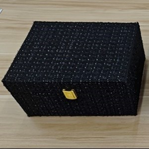 Stor smyckeskrin med svart textil och guldspänne, perfekt för förvaring av dina smycken.