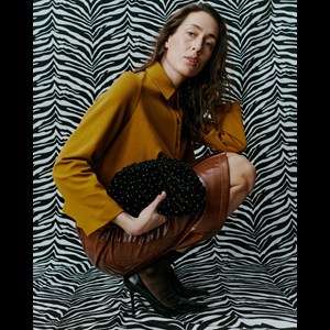 Clutchen är tillverkad i svart velour och dekorerad med svarta pärlor som skapar en elegant glans på ytan. Den har en stadig botten och en klassisk ramstängning i imitationläder. Invändigt finns ett ljust twillfoder och en liten dragkedjeficka för det allra nödvändigaste.