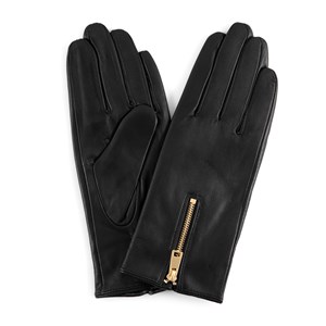 Cool handske i mjukt och läckert lammskinn. Handsken har en cool och rå look, då den är dekorerad med en dragkedja framtill. Läderhandsken har touchfunktion i pekfinger och tumme, fodret på handskarna matchar färgen på skinnhandsken. Innehåller 70% ull/30% akryl.