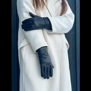 Feminin handske i mjukt och läckert lammskinn. Handsken har en feminin och vacker look, då den är dekorerad med en fin volangdetalj på framsidan. Läderhandsken har touchfunktion i pekfinger och tumme. Fodret på handskarna matchar färgen på läderhandsken. Foder 70% ull / 30% akryl.