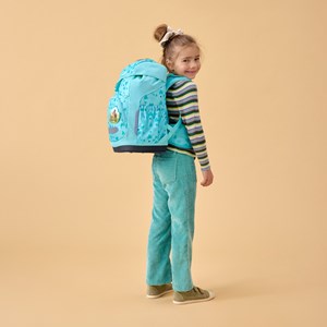 Nyhet: Ergobag Flex väger endast 870 g och är en skolväska som kan användas från årskurs 0 till årskurs 4. Den ergonomiska skolväskan har justerbar höjd baktill via "Your-Size-System", så den kan växa med barnets längd från 100 cm till 150 cm. Har sidfickor för dricksflaska eller paraply. Har fast botten, brett avtagbart höftbälte och integrerat förvaringsutrymme för matlåda och dricksflaska. Ergobag Flex är tillverkad av återvunnen polyester: Textil 2 Textil.