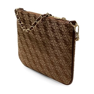 Elegant och modern clutch med ett karaktäristiskt logomönster som ger ett exklusivt uttryck. Den dekorativa logodetaljen på framsidan tillför en stilfull varumärkeskänsla medan den fina kedjeremmen ger väskan en feminin och modern look. Väskans platta design gör den perfekt för dina viktigaste saker som mobil, kort och små essentials. Den kompakta storleken gör den idealisk både till vardags när du vill ha en lätt och praktisk väska och till kvällen när den fungerar som en elegant accessoar till din outfit. En stilfull väska som kombinerar funktionalitet med klassisk design.