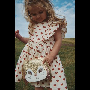 Axelväska formad som en glittrig liten kanin med söta kaninöron. Designad med en smal axelrem och enkel dragkedja. Perfekt för att bära alla dina småsaker över axeln. Lämplig för åldrarna 3 och uppåt.