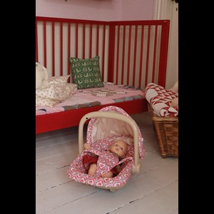 Söt babydocka i jordgubbsklänning. Vår Fraise-docka är 32 cm hög och har den perfekta storleken för små händer. Hennes ögon har ett verklighetstroget djup. Fraise-dockan har en mjuk och flexibel kropp och är lätt att klä på och leka med.