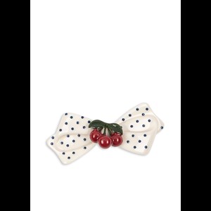 Klassisk hårspänne med våra karaktäristiska prickar, en rosett och körsbär. Den perfekta pricken över i:et till vilken liten outfit som helst. Lämplig från 3 år.