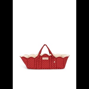 Vadderad docklyft designad med mjuka remmar, dekorativa kanter och vågiga kanter. Ett perfekt tillbehör för små dockföräldrar, vilket gör det enkelt för dem att ta med sig sina bästa små vänner överallt.