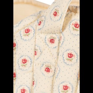 Vadderad dockbärsele designad med praktiska bärremmar, mjuka kantband och vågiga kanter nederst.