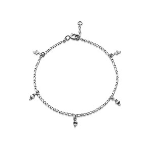 Armband med små hamrade berlocker, monterade på den eleganta figaros-kedjan. Kedjan är justerbar och mäter från 15,5 cm till 17,5 cm.
