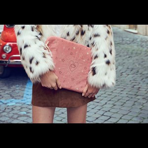 Kosmisk teatermagi strålar ut från centrum av vår lila Computer Sleeve, där ett magiskt hjärta omges av strålande stjärnor.