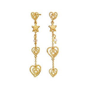 Fred, kärlek och harmoni möts i våra Irena-örhängen, där hjärtan och lugna stjärnor faller längs kedjan – som en symbol för skönhet och balans.