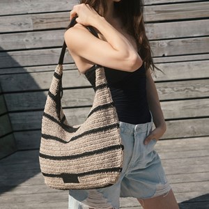 SoleaMBG Bag, Raffia från Markberg är tillverkad av halm som noggrant handflätats, vilket ger den ett lätt och organiskt uttryck som andas sommar och elegans. Det naturliga materialet ger en unik känsla, eftersom varje väska skiljer sig något från den andra och därmed blir en personlig och unik del av din garderob. Väskans axelrem är tillverkad i kalvskinn. Väskan har ett stort fack med dragkedja, där det bland annat finns plats för en 14-tums dator. Invändigt hittar du även en ficka med dragkedja på ena sidan. Väskans foder är i 100 % bomull och den mäter 43 cm x 48 cm x 6 cm.