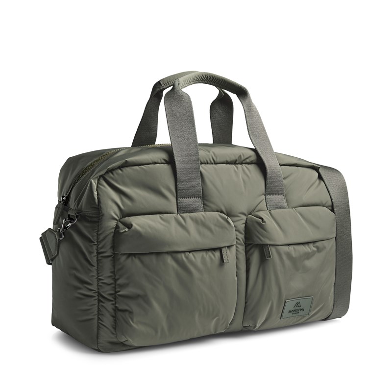 More Weekend bag från Markberg är en snygg och praktisk puffer-resväska tillverkad av 100% återvunnen polyester. Väskan är vattenavvisande och tillverkad i ett extra slitstarkt material. Väskan stängs med dragkedja och har två stora fickor med dragkedja på framsidan. Förutom det stora praktiska facket finns det även en innerficka med dragkedja. Remmen på väskan kan justeras i längd eller tas bort helt. Markberg-logotypen på framsidan är tillverkad av veganskt silikon, där inga animaliska material använts. Fodret i väskan är i 100% återvunnen polyester. Mått: 50 cm x 31 cm x 21 cm