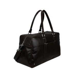 Weekendväska i kalvskinn som förenar exklusivitet och funktionalitet. Elegant och rymlig design med en lyxig känsla i mörkbrunt läder och bomullsdetaljer. Robust men samtidigt stilfull – perfekt för både kortare resor och weekendutflykter