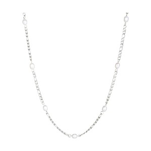 Ett dekorativt halsband med små pärlor utspridda längs kedjan, vilket skapar ett lätt och harmoniskt intryck. Kombinationen av fina kedjelänkar och mjuka pärlor ger smycket en naturlig och feminin touch som faller vackert runt halsen. Halsbandet passar både på egen hand för en enkel look eller tillsammans med andra kedjor för ett mer personligt uttryck. Ett mångsidigt smycke som passar både till vardags och till fest.