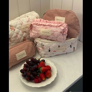 Ge din vardag en feminin touch med denna söta lilla sminkväska. Den har ett bedårande rosetmönster och en mjuk rosa nyans. De små volangdetaljerna längs dragkedjan ger den en lekfull och romantisk look, medan storleken gör den perfekt för förvaring av smink, hårspännen eller andra småsaker när du är på språng.