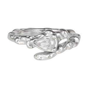 En detaljerad ring med ett organiskt och livfullt design, där mjuka, flödande linjer omger en glittrande sten. Kombinationen av den strukturerade ytan och den klara stenen ger ringen ett spännande samspel och ett iögonfallande utseende. Ringen fungerar vackert på egen hand som ett distinkt element, men kan också kombineras med andra ringar för att skapa en mer personlig look. Ett smycke som tillför kant och personlighet till både en avslappnad stil och en mer sofistikerad outfit.