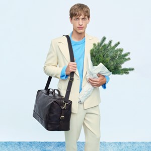 Weekendväska från Saddler i buffelläder. Avtagbar och justerbar axelrem i webbing. Handtag i läder. Metalldragkedja på toppen. Två öppna fickor samt en ficka med dragkedja inuti huvudfacket. 100% polyesterforder. Präglad Saddler logo.