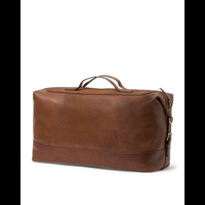 Weekendväska från Saddler i buffelläder. Avtagbar och justerbar axelrem i webbing. Handtag i läder. Metalldragkedja på toppen. Två öppna fickor samt en ficka med dragkedja inuti huvudfacket. 100% polyesterforder. Präglad Saddler logo.