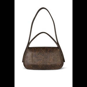 Axelväska med handtag och justerbar, avtagbar axelrem. Metallstängning framtill i form av den ikoniska ö-modellen. Insydd ficka med logotyp på insidan. Silverfärgade metalldetaljer. Tvättad och sliten look. Huvudmaterial tillverkat av återvunnet läder.