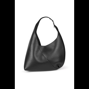 Axelväska med böjd axelrem. Stängning med stängningsmekanism på insidan. Metallbeslag i form av den ikoniska ön på axelremmen. Ficka med logotyp på insidan. Silverfärgade metallbeslag. Huvudmaterial tillverkat av återvunnet läder.