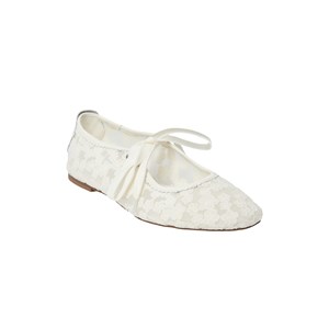 Ballerinaskor med snörning och mesh och rund tå. Platt sula med liten blockklack. Snörstängning med textilögla. Sulan är gjord av gummi.