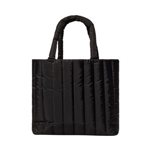 Stor quiltad shopper med präglad logotyp framtill. Väskan har tryckknappsknäppning, en innerficka och vadderade handtag.