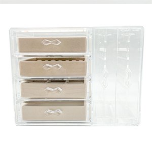 Organisera dina smycken på ett elegant sätt med denna stiliga UNIQ Akryl Organizer. Detta moderna förvaringssystem kombinerar funktionalitet och estetik och är perfekt för både små och stora smycken. Den transparenta akrylstrukturen ger ett sofistikerat utseende, medan den praktiska förvaringen hjälper dig att hålla ordning på allt från ringar, örhängen till halsband och armband. Denna organizer är perfekt för din sminkstation, badrum eller garderob, och den är idealisk för den modeintresserade som söker både stil och funktion. Med sina 4 lådor och två praktiska örhängeshållare kan du enkelt förvara dina smycken på ett överskådligt sätt. De klara akrylboxarna ger en fantastisk översikt över dina smycken, så att du snabbt kan hitta det du söker utan att skapa oreda. Lådorna är lätta att öppna, och du kan förvara mindre smycken som ringar och örhängen i de specifikt designade facken, medan de större lådorna är perfekta för armband, halsband och andra större smycken. Perfekt för att förvara och visa upp dina smycken på ett vackert och funktionellt sätt.